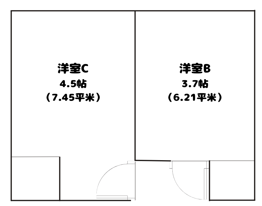 4.5畳の部屋の方が広く見えますが、扉を開けるとほぼ通路としての役割しか果たせません。