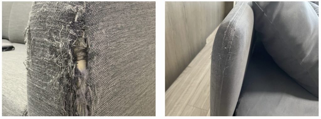 しかも左のソファは購入後半年で、スポンジも出てくるほどボロボロに。